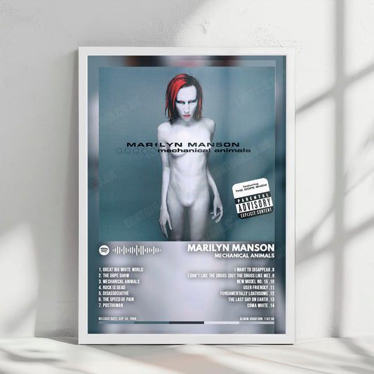 Marilyn Manson "Mechanical Animals" Album Cover Poster - with Complete Tracklist