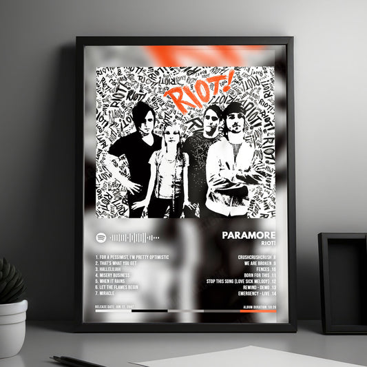 Paramore "Riot!" Album Cover Poster - with Complete Tracklist