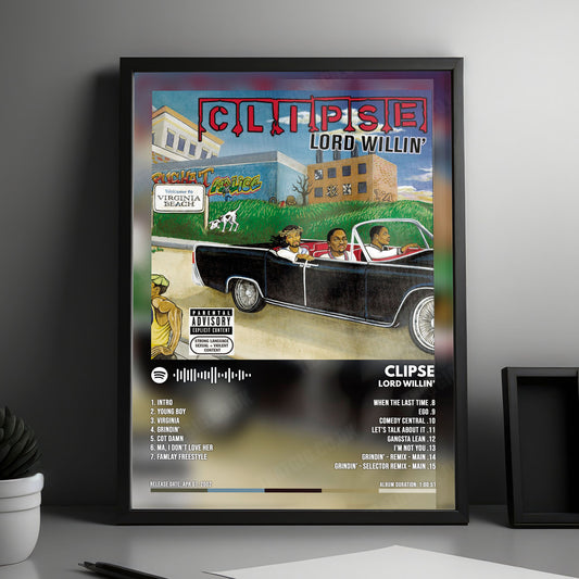 Clipse "Lord Willin'" Album Cover Poster - with Complete Tracklist