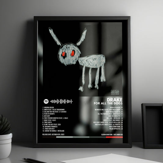 Drake "For All The Dogs" Album Cover Poster - with Complete Tracklist