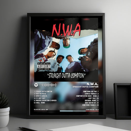 N.W.A "Straight Outta Compton" Album Cover Poster - with Complete Tracklist