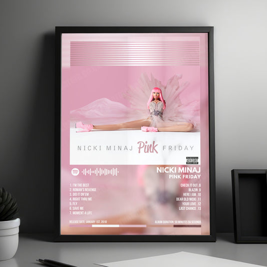 Nicki Minaj "Pink Friday" Album Cover Poster - with Complete Tracklist