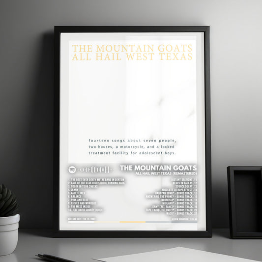 Mountain Goats "All Hail West Texas" Album Cover Poster - with Complete Tracklist