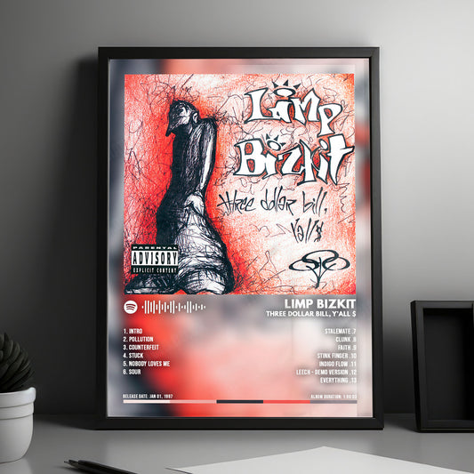 Limp Bizkit "Three Dollar Bill, Y'all" Album Cover Poster - with Complete Tracklist