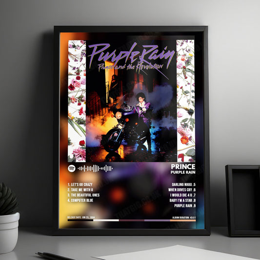 Prince "Purple Rain " Album Cover Poster - with Complete Tracklist