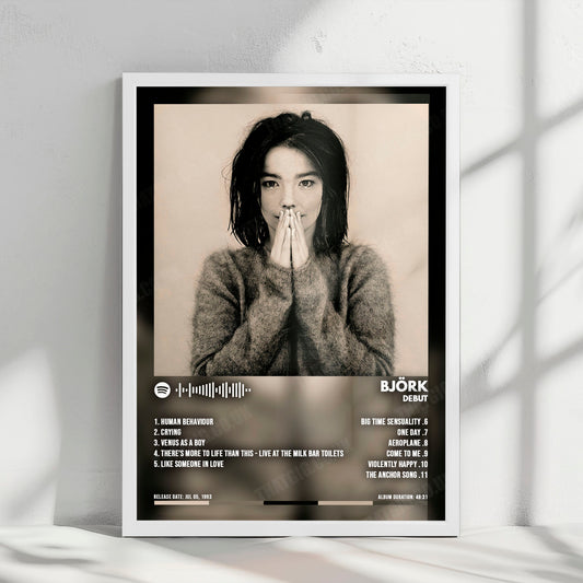 Björk "Debut" Album Cover Poster - with Complete Tracklist
