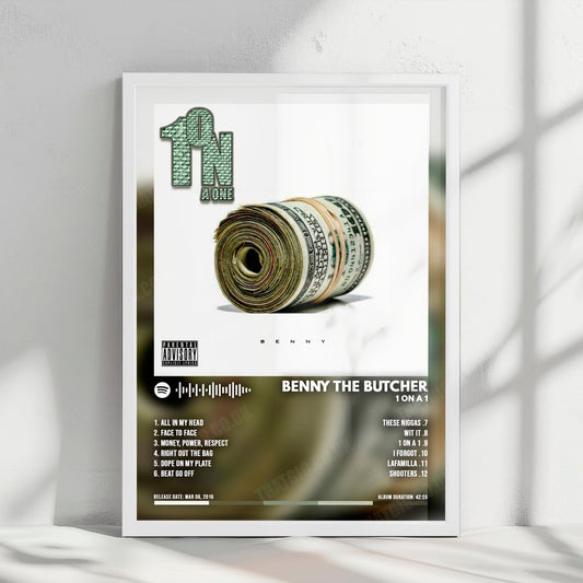 Benny The Butcher "1 on a 1" Album Cover Poster - with Complete Tracklist