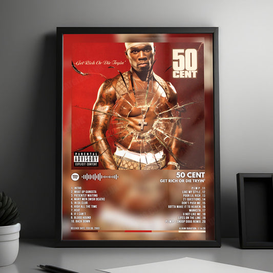 50 Cent "Get Rich or Die Tryin'" Album Cover Poster - with Complete Tracklist