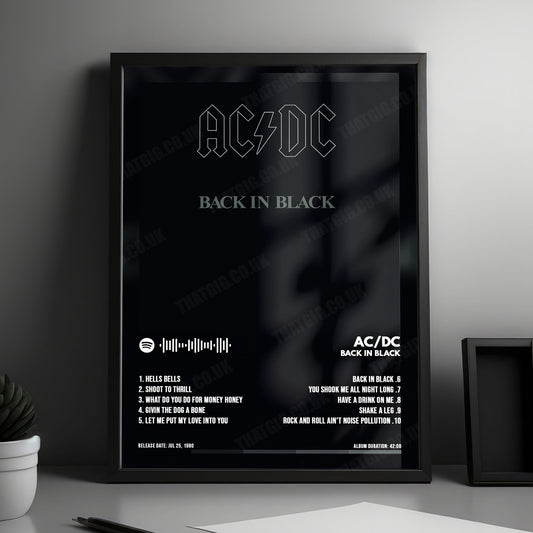 AC/DC "Back in Black" Album Cover Poster - with Complete Tracklist