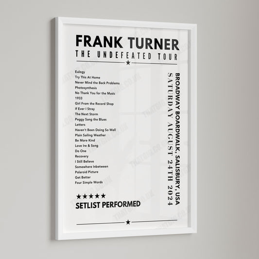 Frank Turner Setlist Poster - Broadway Boardwalk, Salisbury Beach - August 24th, 2024