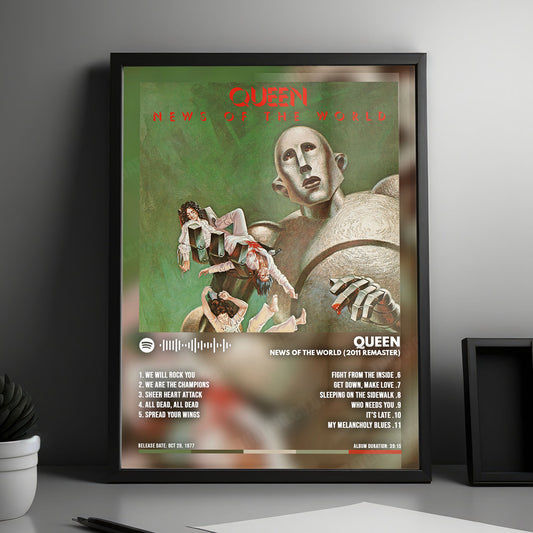 Queen "News of the World" Album Cover Poster - with Complete Tracklist