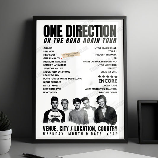 One Direction Setlist Poster - Metro Radio Arena, Newcastle upon Tyne - October 27th, 2015