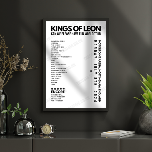 Kings of Leon Setlist Poster, Motorpoint Arena, Nottingham - July 8th, 2024