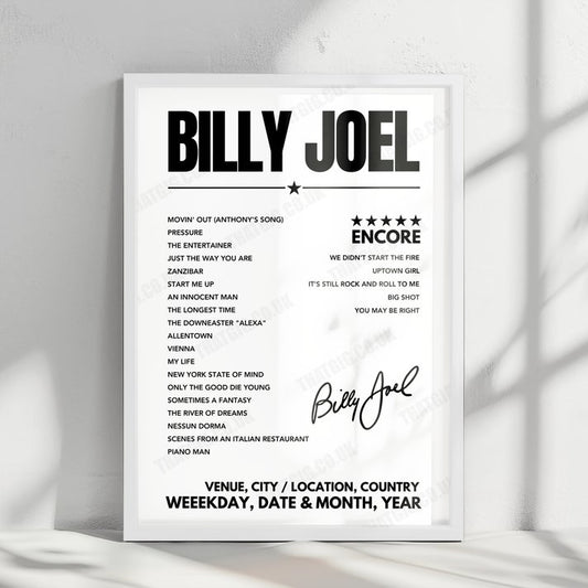 Billy Joel Setlist Poster - Allegiant Stadium - February 26th, 2022