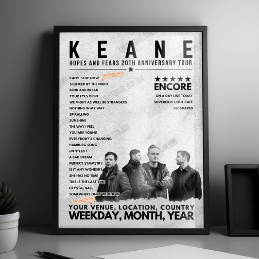 Keane Setlist Poster - The OVO Hydro, Glasgow - October 18th, 2024