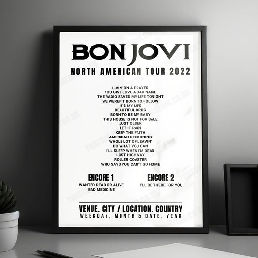 Bon Jovi Setlist Poster - Spectrum Center, Charlotte - April 8th, 2022
