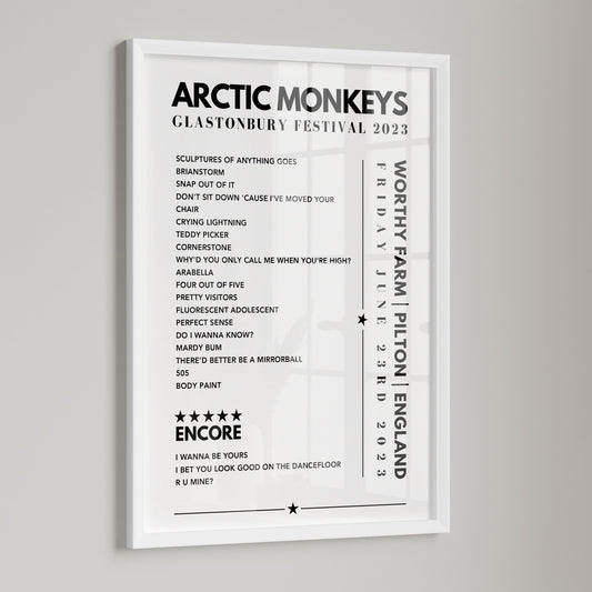 Arctic Monkeys Setlist Poster - at Glastonbury, Worthy Farm, England, on June 23rd, 2023