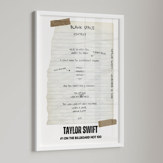 Taylor Swift "Blank Space" Lyric PosterVendor:Taylor SwiftRegular price From £10.95 GBPRegular priceUnit price / per-
