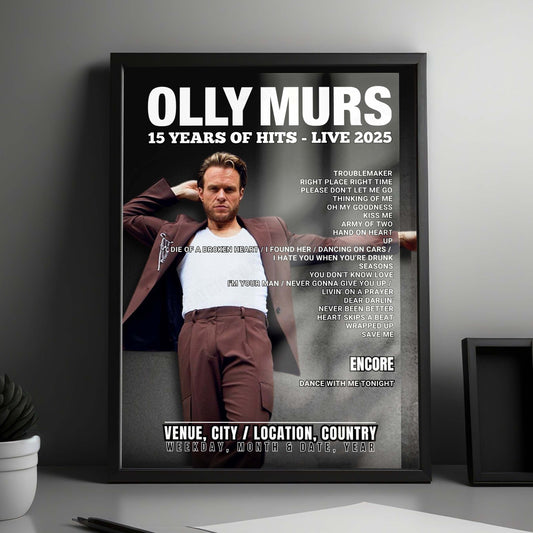 Olly Murs Setlist Poster - The O2 Arena, London - May 25th, 2025