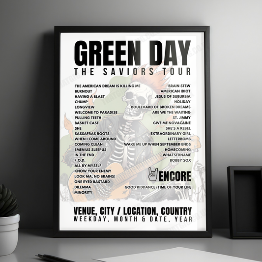 Green Day Setlist Poster - Coachella Festival 2025 - April 12th, 2025