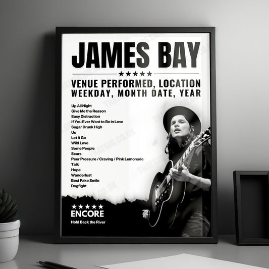James Bay Setlist Poster - Beach Ballroom, Aberdeen - May 12th, 2022