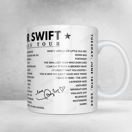 Taylor Swift Setlist Mug - Scottish Gas Murrayfield Stadium, Edinburgh - June 9th, 2024