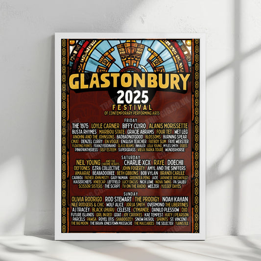 Glastonbury Festival Poster 2025 - 3-Day Line-up, Worthy Farm, Pilton