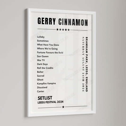 Gerry Cinnamon Setlist Poster - Bramham Park, Leeds Festival - August 24th 2024