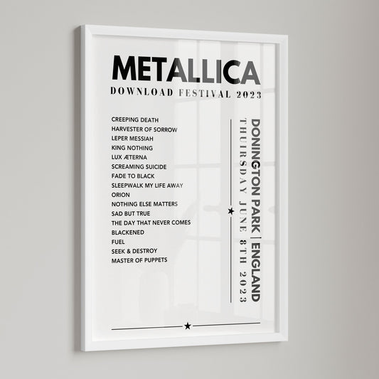 Metallica Setlist Poster - Download Festival on June 8th 2023