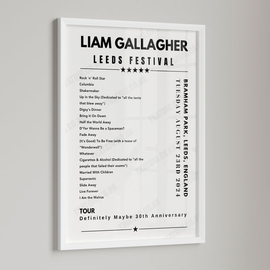 Liam Gallagher Setlist Poster - Leeds Festival - August 23rd, 2024