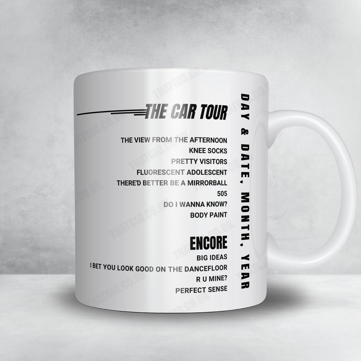 Our products are unofficial fan tributes and are not licensed, endorsed, or affiliated with any artists, bands, venues, or event organizers. They are designed as transformative works with our setlist and mug designs, offering something not previously available: a unique way to commemorate memorable performances and provide fans with meaningful keepsakes.