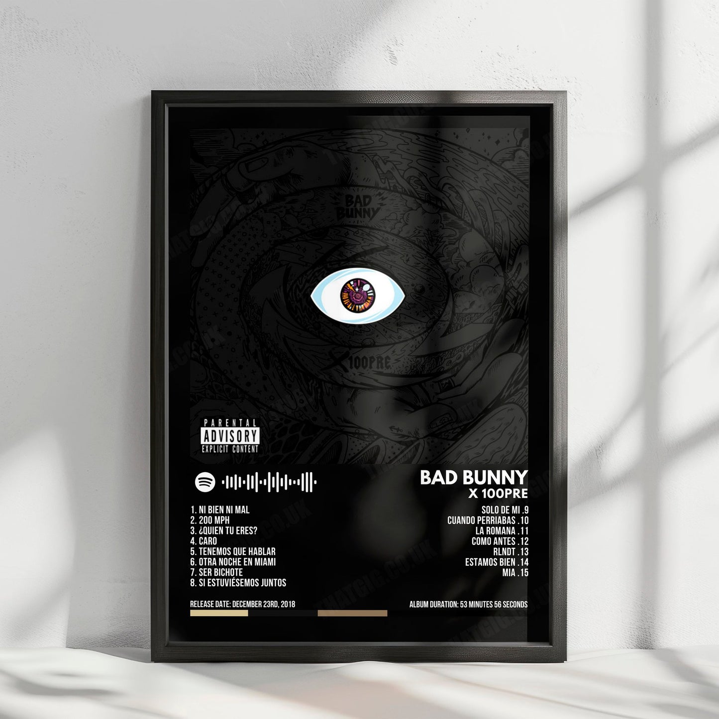 Bad Bunny "X 100pre" Album Cover Poster - with Complete Tracklist