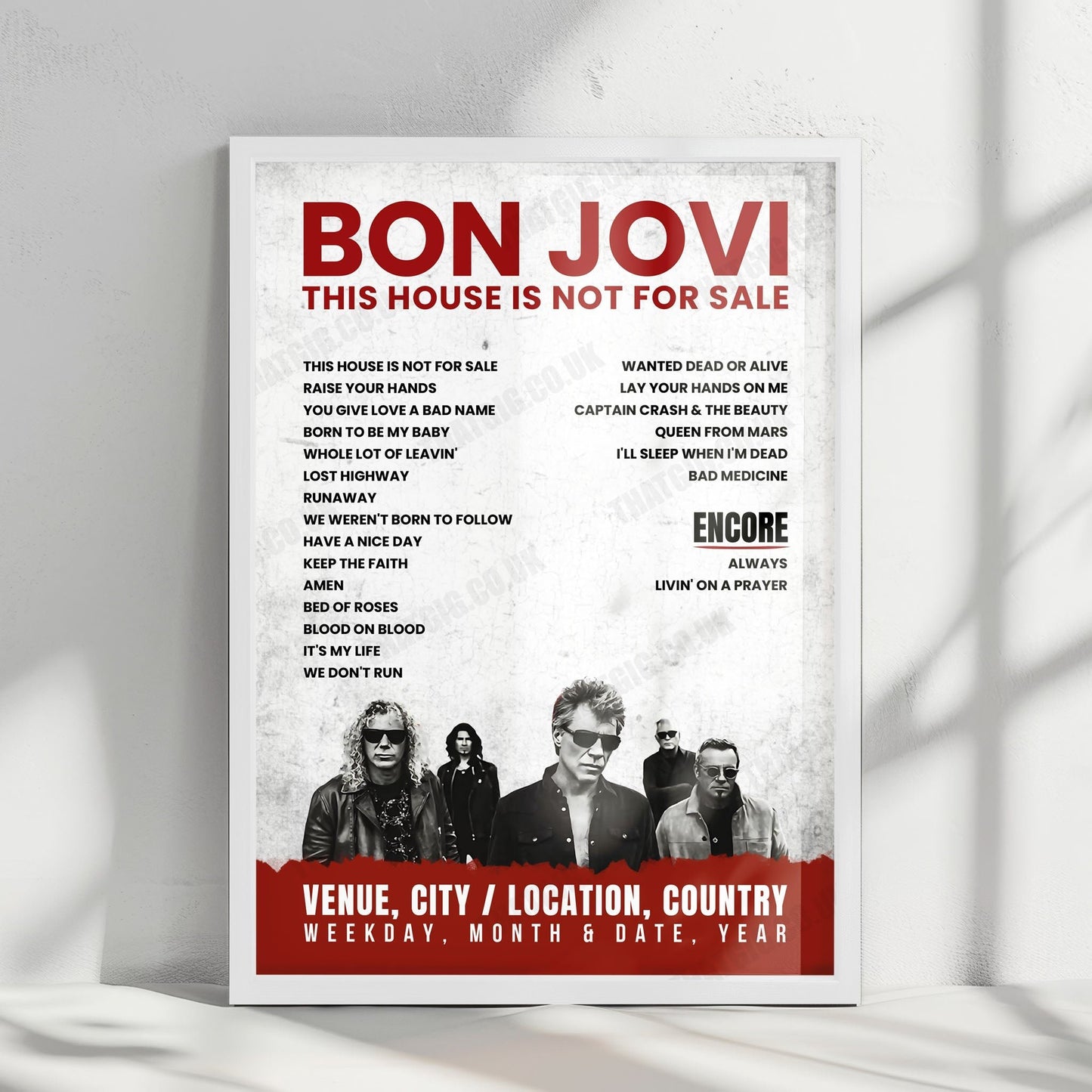 Relive the passion and excitement of Bon Jovi's performance at Allianz Parque with this setlist poster. Whether you attended the concert or simply want to own a piece of rock history, this poster is a perfect addition to any fan's collection. Don't miss out on the opportunity to bring the magic of that night into your life with this exceptional poster.