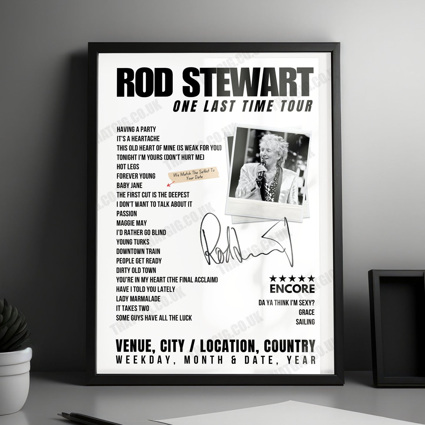 - Perfect Souvenir: Honoring Rod Stewart’s “One Last Time” tour.