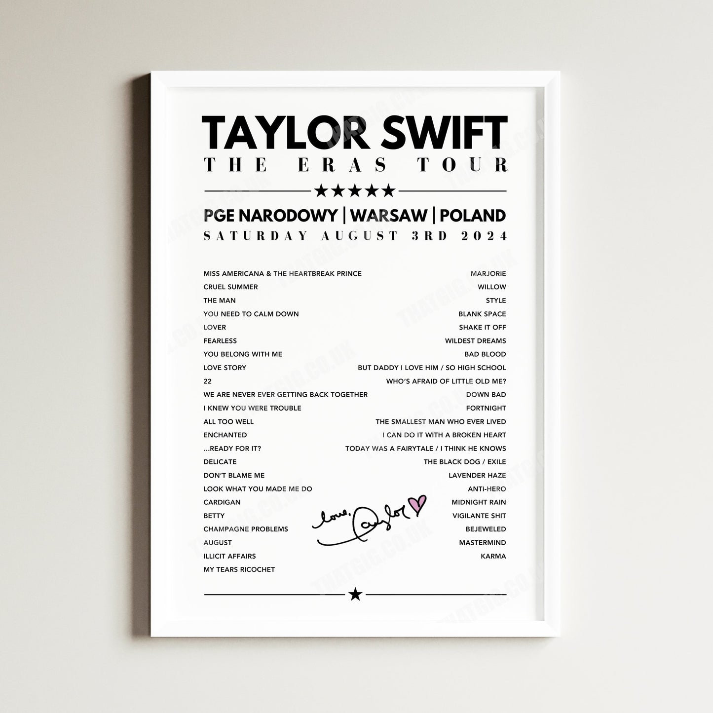 Taylor Swift Setlist Poster - PGE Narodowy, Warsaw - August 3rd, 2024